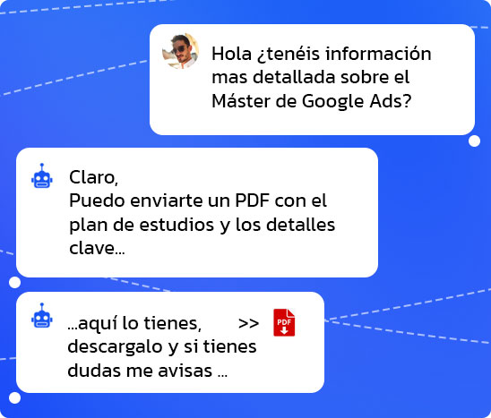El chatbot ofrece un PDF informativo en el momento adecuado, resolviendo dudas y manteniendo el interés sin presión comercial.